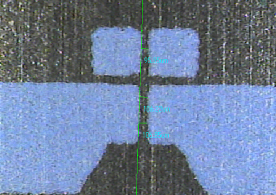 当社ではIC搭載部であるGAP間100μの印刷が可能です。